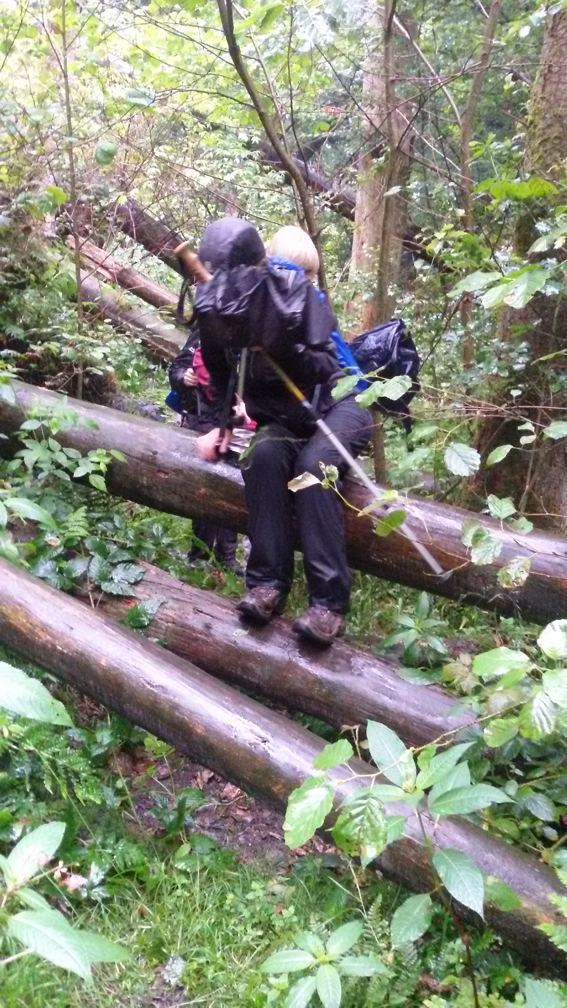 auch ich habe mich bei der Baumquerung verweigert und die Alternative gewählt. Der weitere Weg durch Gestrüpp und Matsch war aber problemlos zu bewältigen.